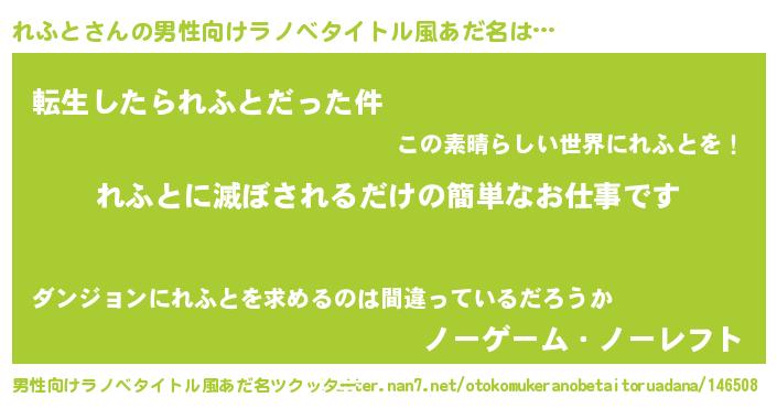 | 伝説のあだ名 | 『救世主となる錬金術士れふと』 |