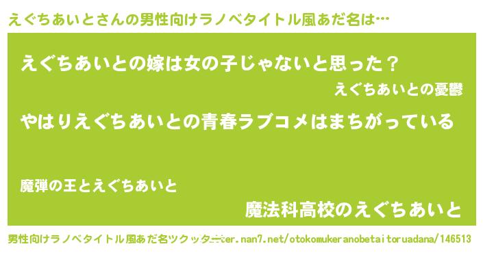 | 女子向けラノベタイトル風あだ名 | 『えぐちあいとの雑貨屋さん』 |