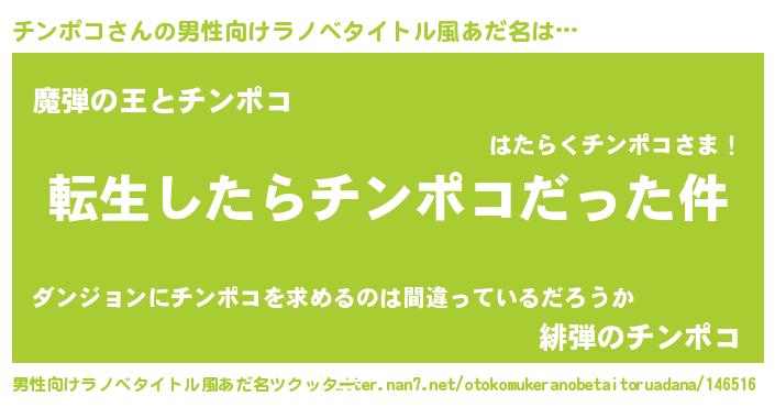 | 胡散臭い通販商品みたいなあだ名 | 『世界中を虜にした100年もののヴィンテージワイン…その名も「チンポコ」』 |