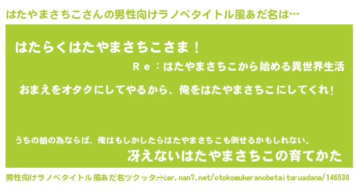 | 胡散臭い通販商品みたいなあだ名 | 『お金では代えられないイリジウム磁石…その名も「はたやまさちこ」』 |