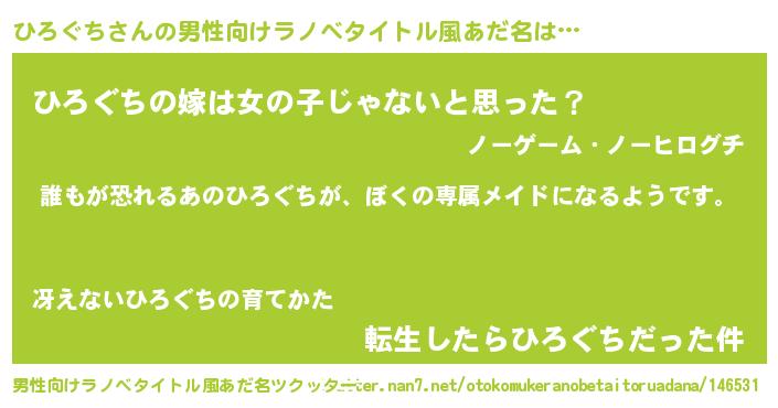 | 女子向けラノベタイトル風あだ名 | 『異世界でカフェひろぐちを開店しました。』 |