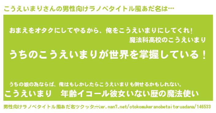 | 肩書あだ名 | 『こうえいまり機長』『こうえいまり中佐』 |