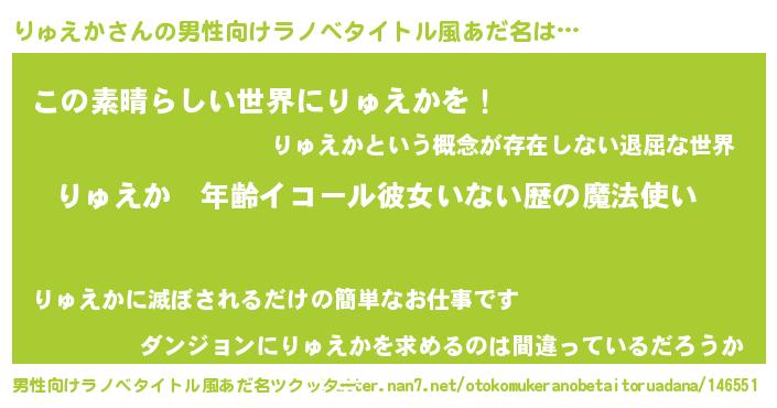 | ヘコむあだ名 | 『りゅっぺ』『りゅえか(爆)』『牛乳』 |