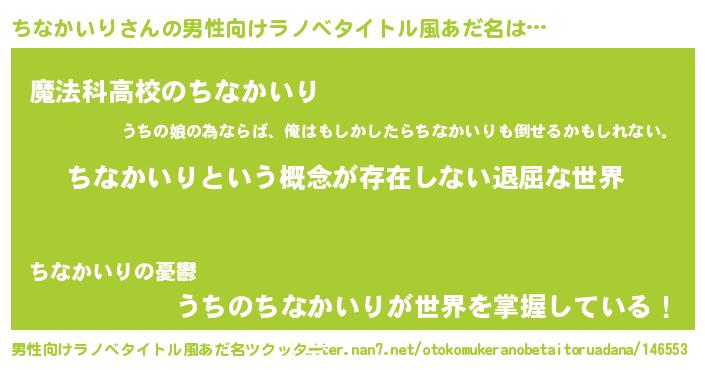 | 女子向けラノベタイトル風あだ名 | 『異世界で失敗しない100のちなかいり』 |