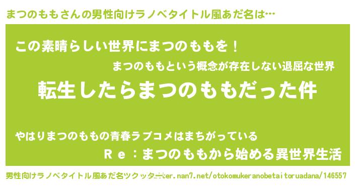 | 女子向けラノベタイトル風あだ名 | 『まつのももの玉の輿計画!』 |