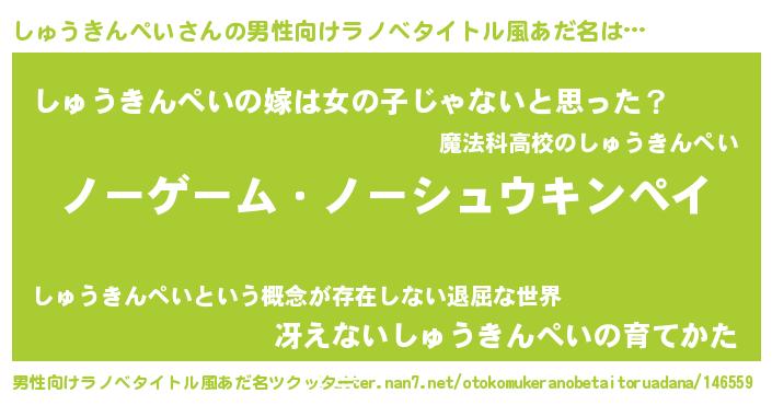 | ヒーロー風カッコイイあだ名 | 『慈愛の使者しゅうきんぺい』 |