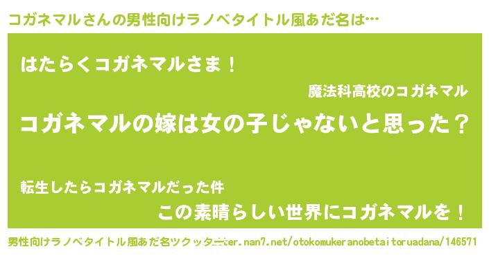 | 意味不明あだ名 | 『とにかく怪しいコガネマル』 |