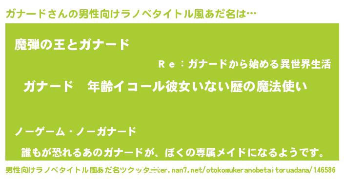 | 意味不明あだ名 | 『ヨモギ科ガナード属』『自称ガナード』 |