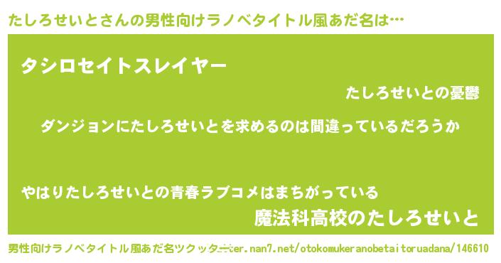 | 女子向けラノベタイトル風あだ名 | 『たしろせいとは平凡を望む』 |