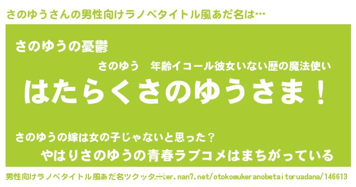 | ファンタジー風あだ名 | 『サノフェル』『エターナルサノユウー』 |