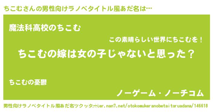 | 胡散臭い通販商品みたいなあだ名 | 『全米が絶賛したサプリメント…その名も「ちこむ」』 |