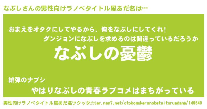 | 女子向けラノベタイトル風あだ名 | 『(仮)なぶしのやんごとなき事情』 |