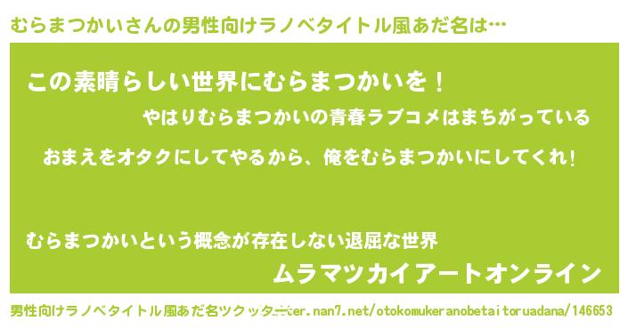 | 女子向けラノベタイトル風あだ名 | 『むらまつかい恋絵巻』 |