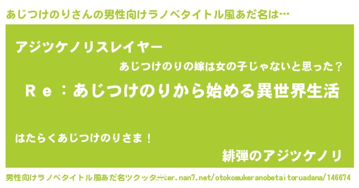 | 意味不明あだ名 | 『自称あじつけのり』 |