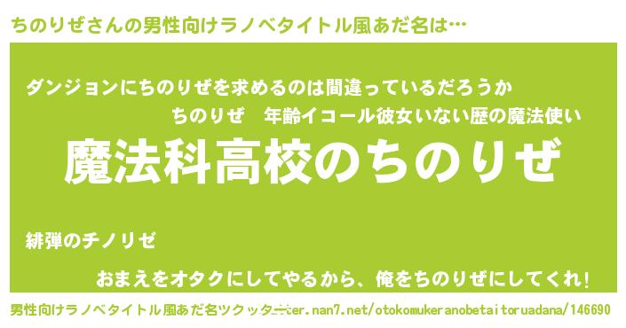 | 女子向けラノベタイトル風あだ名 | 『ちのりぜなんてお断りですっ。』 |