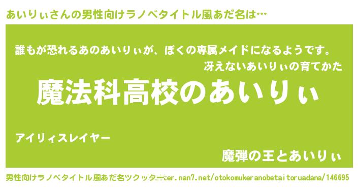 | 女子向けラノベタイトル風あだ名 | 『あいりぃアンティーク』 |