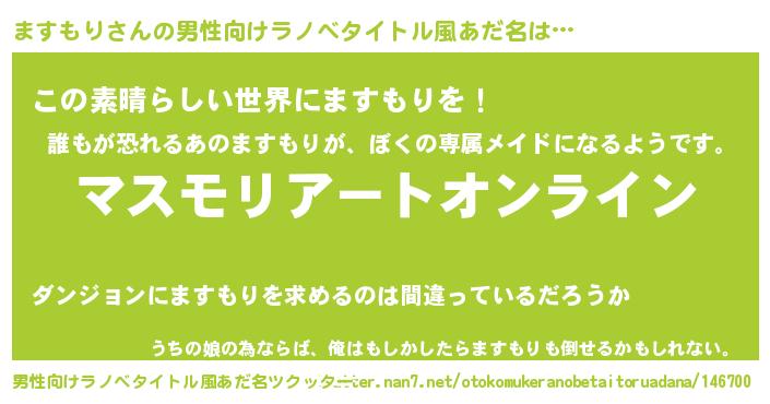 | 女子向けラノベタイトル風あだ名 | 『誰かこのますもりを説明してください! ~契約から始まるウェディング~』 |