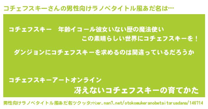 | 女子向けラノベタイトル風あだ名 | 『コチェフスキーは平凡を望む』 |
