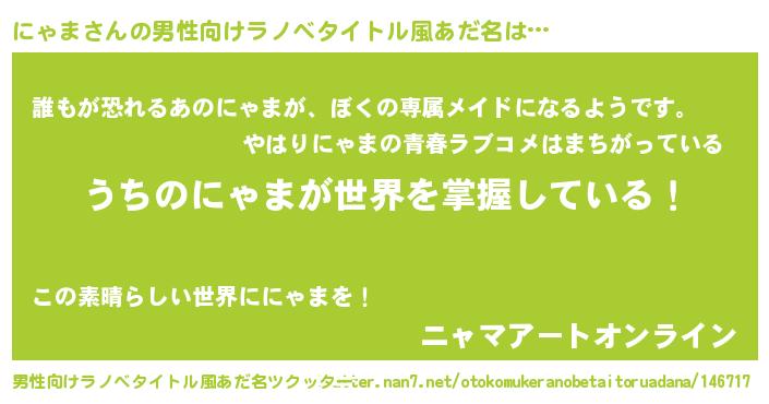 | 女子向けラノベタイトル風あだ名 | 『男装にゃまの憂鬱な任務』 |
