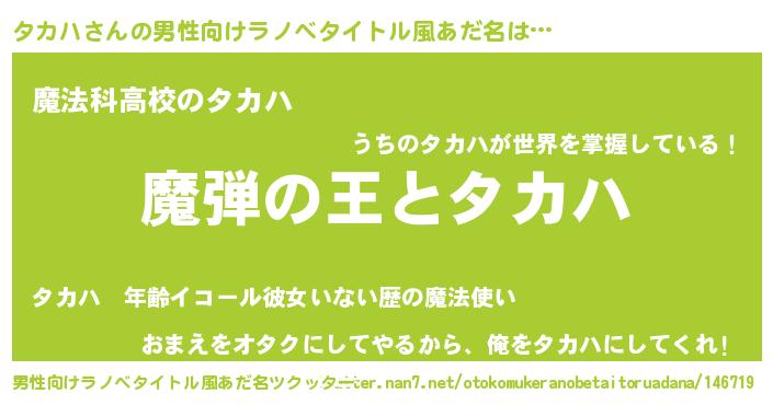 | ヒーロー風カッコイイあだ名 | 『仮面タカダー』『超時空戦士タカハ』 |