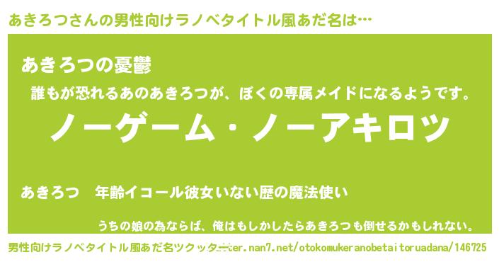| ヒーロー風カッコイイあだ名 | 『慈愛の使者あきろつ』『ネオアキロツ』 |
