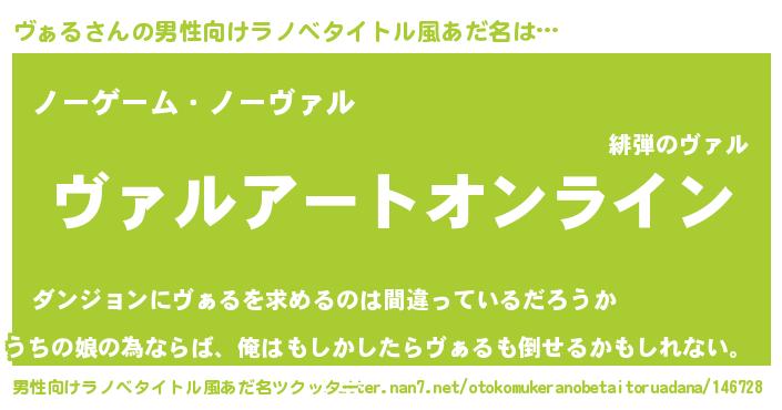 | 胡散臭い通販商品みたいなあだ名 | 『億万長者になれるブレスレット…その名も「ヴぁる」』 |