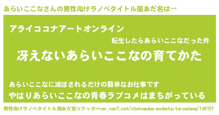 | ヒーロー風カッコイイあだ名 | 『スーパーアライココナ』『仮面アラダー』 |