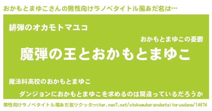| 女子向けラノベタイトル風あだ名 | 『乙女ゲームの破滅フラグしかない悪役おかもとまゆこに転生してしまった…』 |