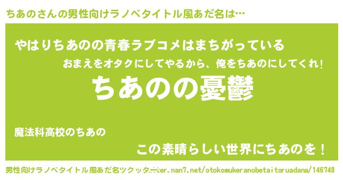 | 女子向けラノベタイトル風あだ名 | 『ちあの姫と円卓の騎士』『ちあの恋絵巻』 |
