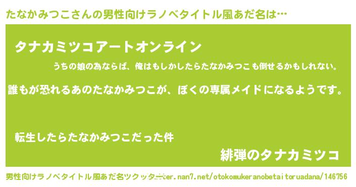 | 意味不明あだ名 | 『永久保存たなかみつこ』 |