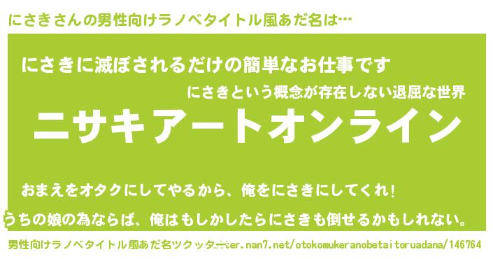 | ファンタジー風あだ名 | 『ニサフェル』『エターナルニサキー』 |