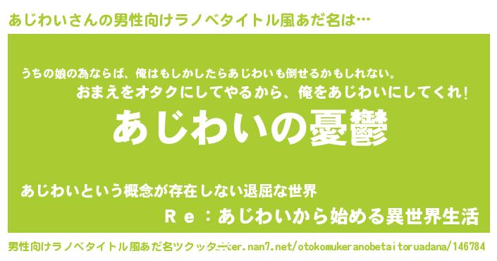 | 胡散臭い通販商品みたいなあだ名 | 『モテモテ間違いなし水晶球…その名も「あじわい」』 |