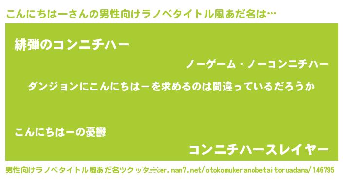 | 女子向けラノベタイトル風あだ名 | 『こんにちはーは平凡を望む』 |