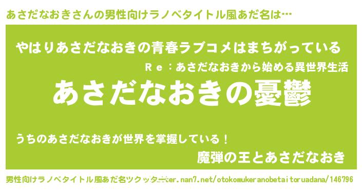 | 胡散臭い通販商品みたいなあだ名 | 『必ず成功する霊験あらたかなお札…その名も「あさだなおき」』 |