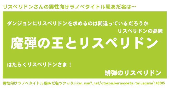 | 女子向けラノベタイトル風あだ名 | 『乙女ゲームの破滅フラグしかない悪役リスペリドンに転生してしまった…』 |