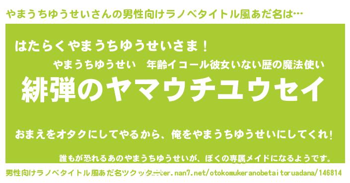 | ヘコむあだ名 | 『やまうちゆうせい(笑)』『やまっふぃ~』 |