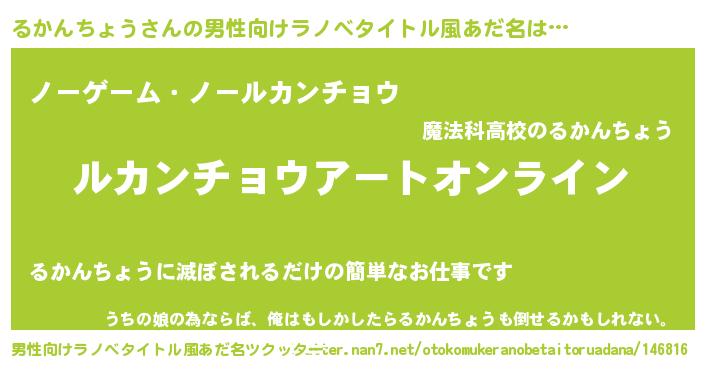 | 胡散臭い通販商品みたいなあだ名 | 『億万長者になれるブレスレット…その名も「るかんちょう」』 |