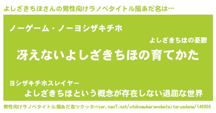 | ヘコむあだ名 | 『よしざきちほ(笑)』『よしふぇ~』 |