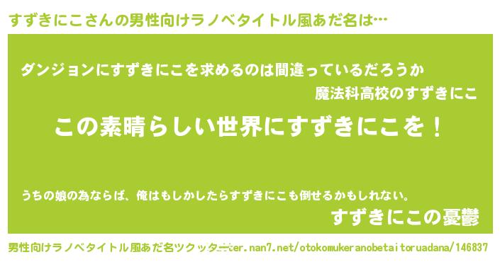 | 女子向けラノベタイトル風あだ名 | 『悪役すずきにこに転生したようですが、知った事ではありません』 |