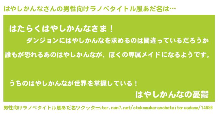 | 胡散臭い通販商品みたいなあだ名 | 『来世でも幸せになれる水素水…その名も「はやしかんな」』 |