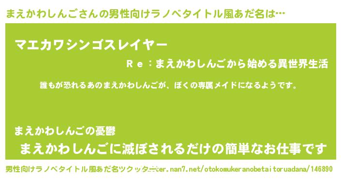 | 女子向けラノベタイトル風あだ名 | 『異世界でカフェまえかわしんごを開店しました。』 |