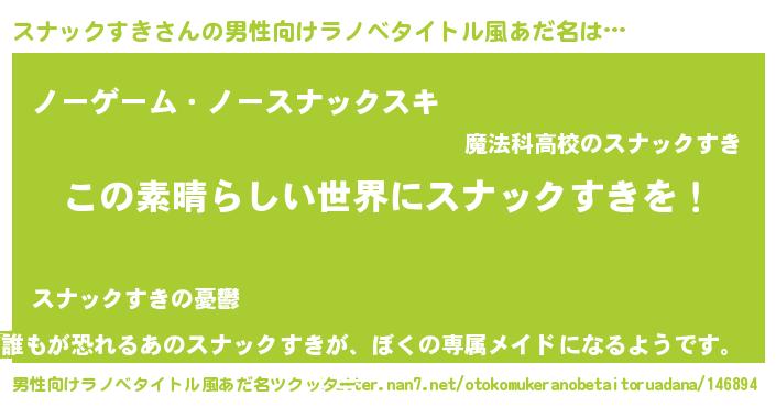 | 女子向けラノベタイトル風あだ名 | 『悪役スナックすきに転生したようですが、知った事ではありません』 |