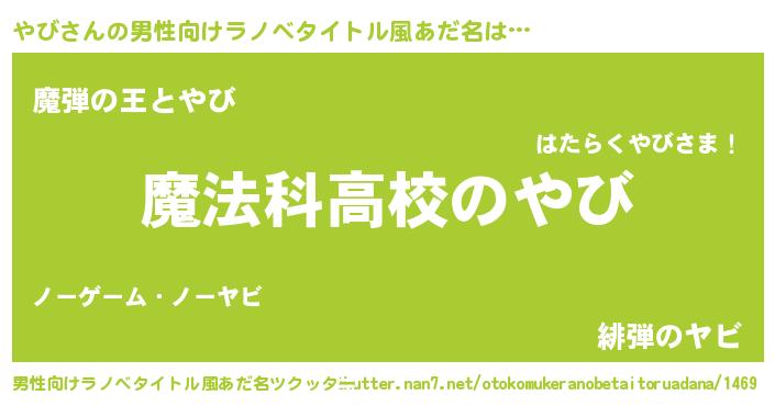 | 女子向けラノベタイトル風あだ名 | 『やびアンティーク』『死神やびの再婚』 |