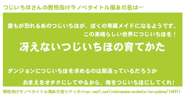 | 女子向けラノベタイトル風あだ名 | 『シンデレラつじいちほ家の靴箱館』 |