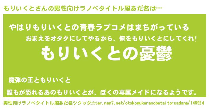 | 胡散臭い通販商品みたいなあだ名 | 『必ず成功するブレスレット…その名も「もりいくと」』 |
