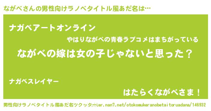 | 意味不明あだ名 | 『とにかく怪しいながべ』 |