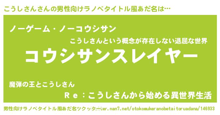 | 肩書あだ名 | 『こうしさん上級大将』『こうしさん助手』 |
