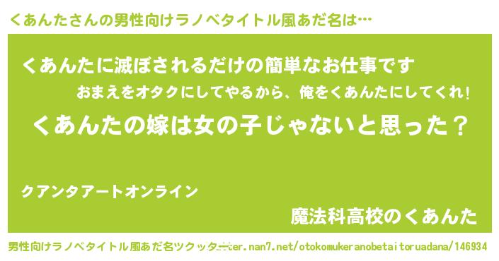 | 女子向けラノベタイトル風あだ名 | 『くあんたの卵を拾いまして』 |
