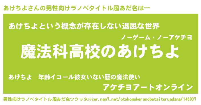 | ヘコむあだ名 | 『あけちよ(小並感)』『あけにー』 |