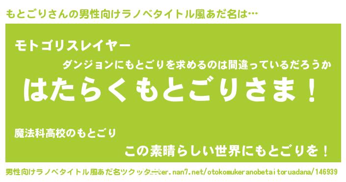 | ヒーロー風カッコイイあだ名 | 『仮面モトダー』『暗黒騎士モト』 |